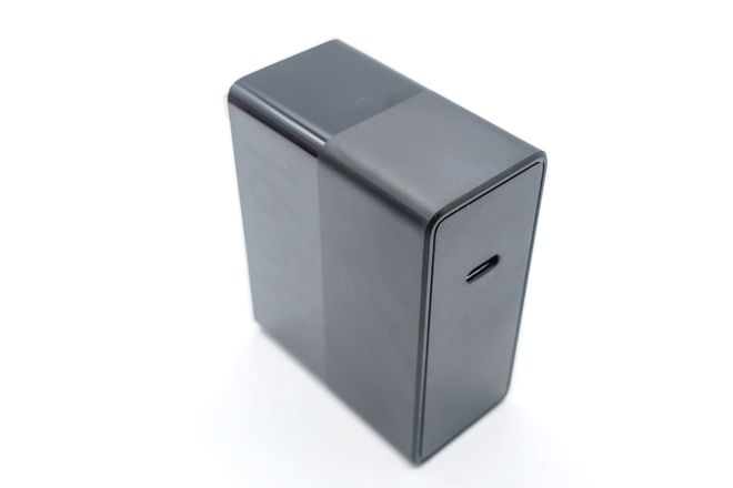 充电器采用PC材质黑色外壳,亮面磨砂撞色设计使其显得很有辨识度。