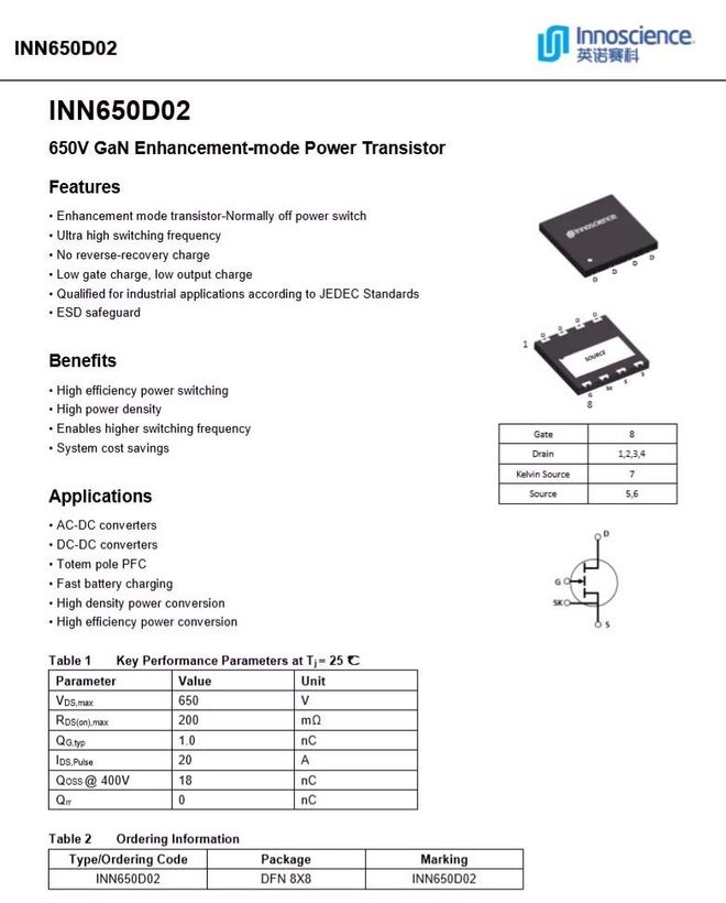 英诺赛科INN650D02详细资料。