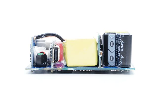 通过观察发现,这款充电器采用PFC+QR开关电源架构设计,PFC进行功率因数校正,QR反激电源进行宽电压输出,最后由协议芯片通过协议识别控制接口输出电压。下面我们从输入端开始了解各器件。