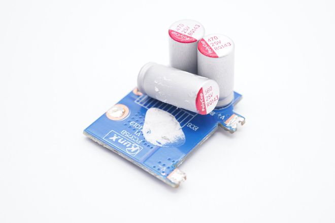 另一面设有三颗滤波固态电容。