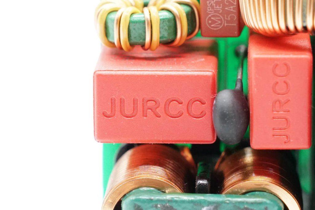 用于PFC供电滤波的捷威薄膜电容,规格为1μF 450V,电容后面是PFC升压电感。